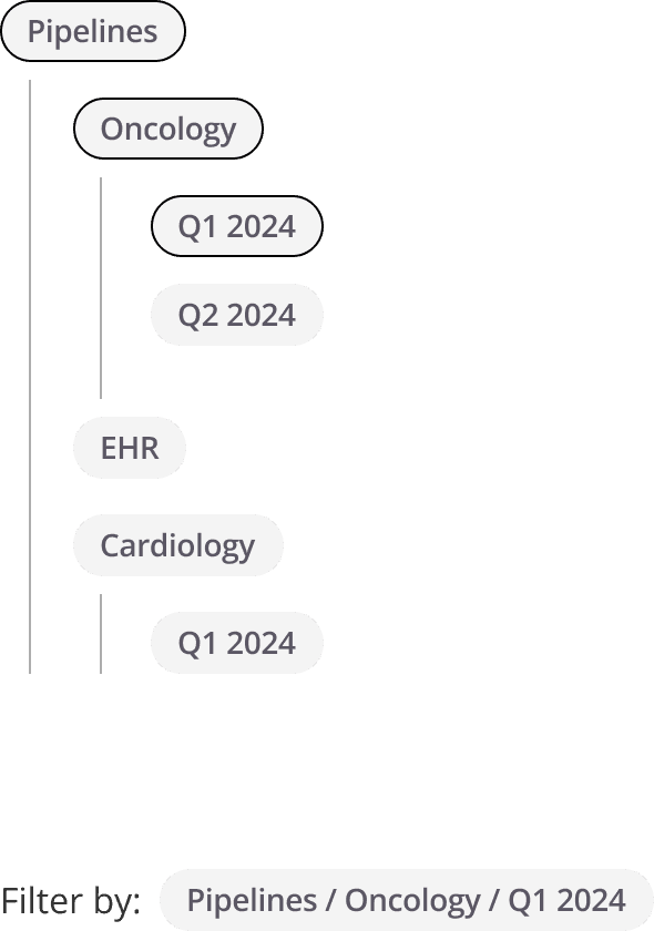 From research, I observed users searched pipelines across multiple dimensions: client type, transformation type, urgency, and ownership. A strict hierarchy would force a single classification.